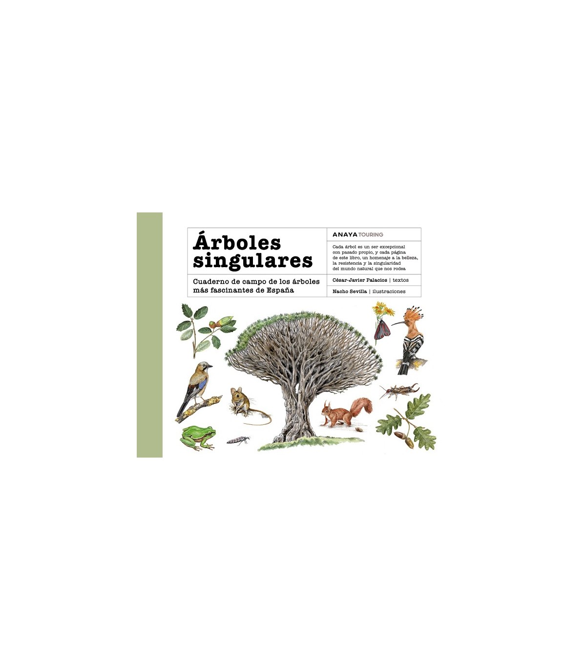 Cada árbol es un ser excepcional con pasado propio, y cada página de este libro, un homenaje a la belleza, la resistencia y la singularidad del mundo natural que nos rodea. Este libro es mucho más que una guía de árboles monumentales: es una declaración de amor al paisaje y los hermosos seres que lo habitan. Con espíritu de naturalistas clásicos, el periodista ambiental César-Javier Palacios y el ilustrador Nacho Sevilla seleccionan cerca de medio centenar de ejemplares de toda España, ofreciéndonos con sus notas y dibujos un viaje pausado por su geografía arbórea más emblemática. Cada página de este cuaderno respira campo, observación y respeto. Desde el tejo milenario de Bermiego al drago canario de Icod, pasando por robles, alcornoques, pinsapos o sabinas, los autores nos invitan a conocer no solo sus características botánicas, sino también su contexto natural, histórico y humano. Aquí el paisaje se entrelaza con el paisanaje: gentes, leyendas, ritos y anécdotas que dan vida al protagonista en un feliz encuentro tanto cultural como biológico. Los textos de Palacios, cargados de rigor y emoción, se acompañan por las delicadas y detalladas acuarelas, casi meditativas, de Sevilla, capaces de capturar magistralmente la esencia de cada hábitat y sus pequeñas criaturas. Esta obra nos brinda la oportunidad de mirar de otra forma los árboles que nos rodean, a detenerse y escuchar lo que el tiempo ha tejido en sus cortezas, las mil y una vidas que sostienen en perfecto equilibrio natural. Una guía ideal para amantes de la naturaleza, la ilustración de campo y para quienes buscan reconectar con el alma verde del territorio.