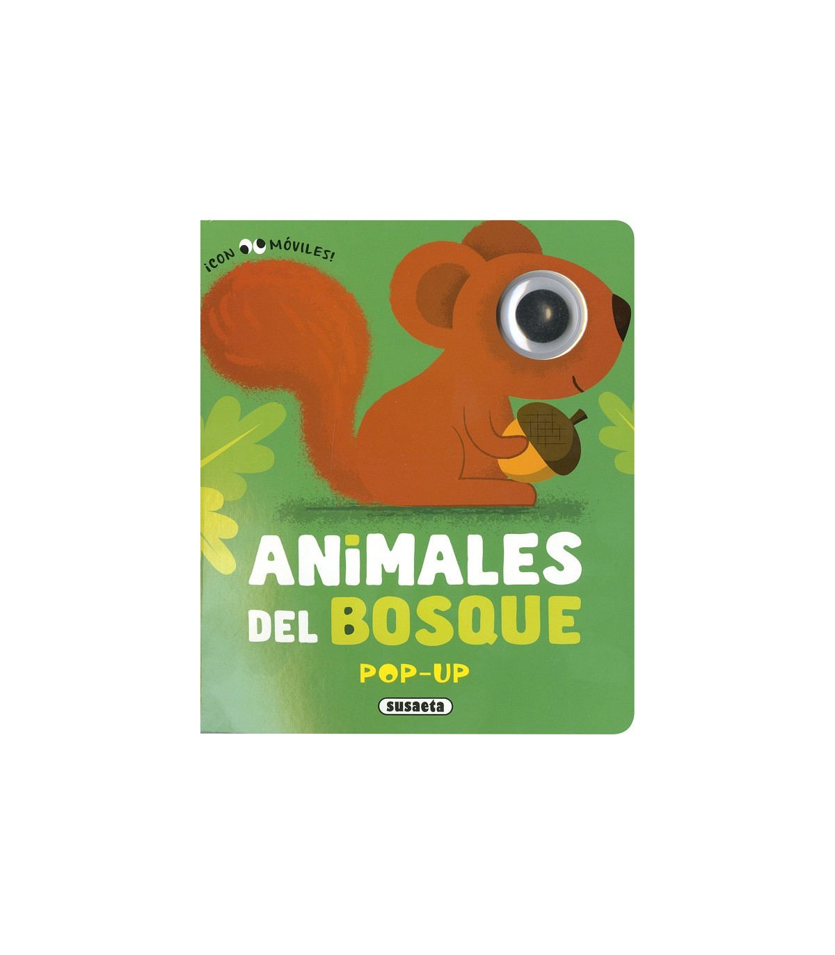 Simpático libro de cartón con ojos de plástico que se mueven y pop-ups para estimular la lectura y despertar el interés por los animales del bosque que tanto gustan a los niños: la ardilla, el oso, el ciervo, el zorro, el búho y el conejo.
