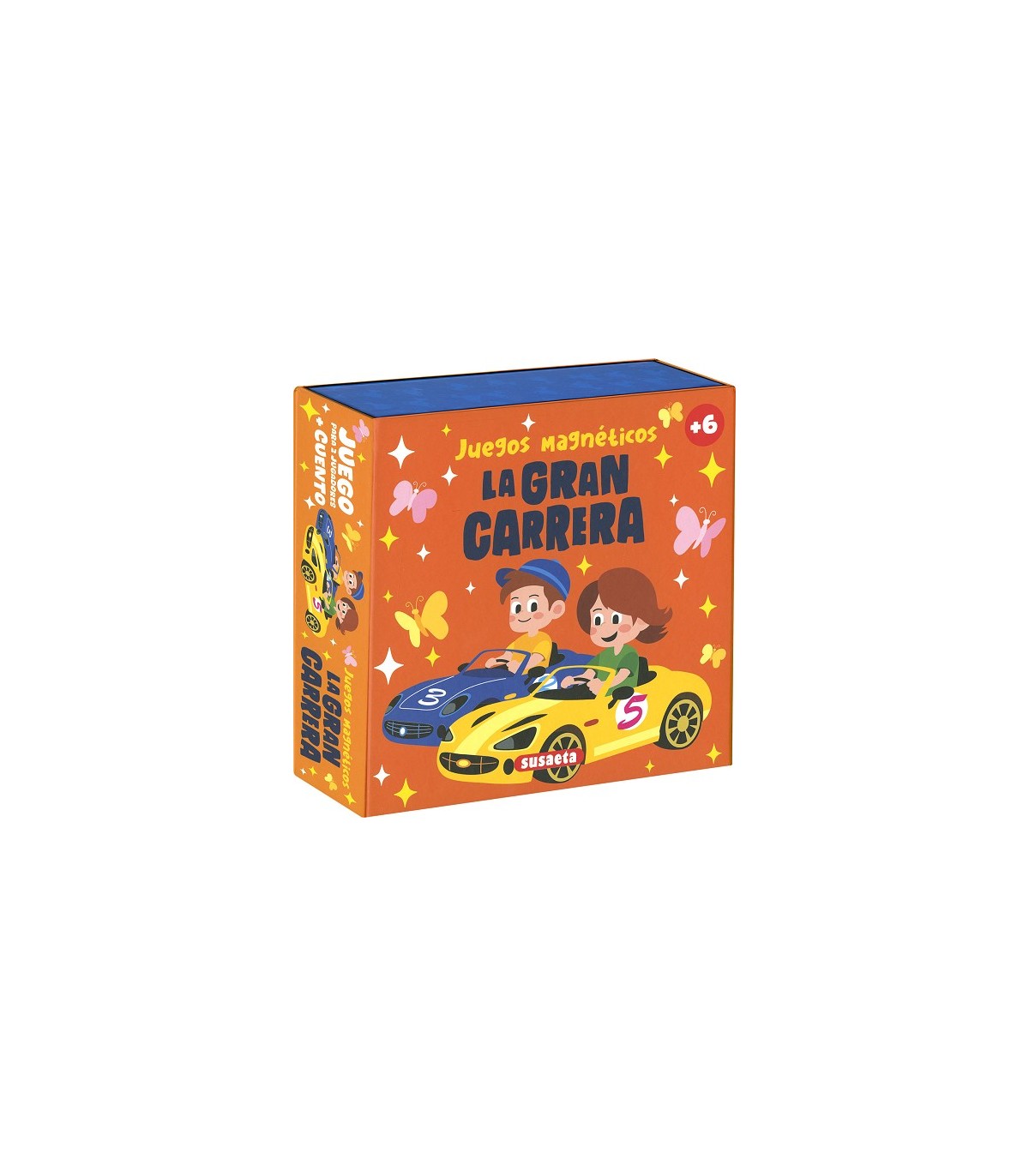 En esta caja de la colección Juegos magnéticos encontrarás un divertido juego, con fichas e instrucciones, y un simpático cuento sobre dos buenos amigos y una carrera de coches, que podrás llevar a donde tú quieras.